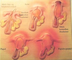 Udvikling af akne - hudorme -komedomer, pustler og cyster