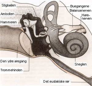 - Det indre øre, som indeholder de egentlige sanseorganer sneglen og buegangene.