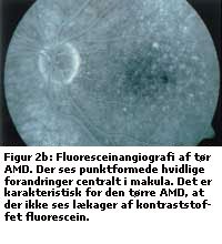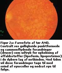 - Der skelnes mellem våd og tør AMD. 85 af AMD-patienterne har den tørre form af AMD, som ikke kan behandles med laser eller farmakologisk (figur 2a og b). I denne gruppe kan man dog ved stærk optik hjælpe mange personer.