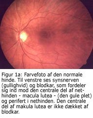 Makula er den medicinske betegnelse for øjets gule plet, hvor det skarpe syn (læsesyn, afstandssyn) dannes. (figur 1a og b)