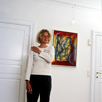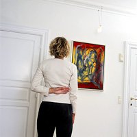 ![]() | Stå eller sid med armene ned langs siden. Løft armene og før hænderne bag nakken. Gentag øvelsen 8-10 gange. Hvis du har besvær med at løfte den ene arm - så hjælp til med den anden arm og tag én arm ad gangen. |